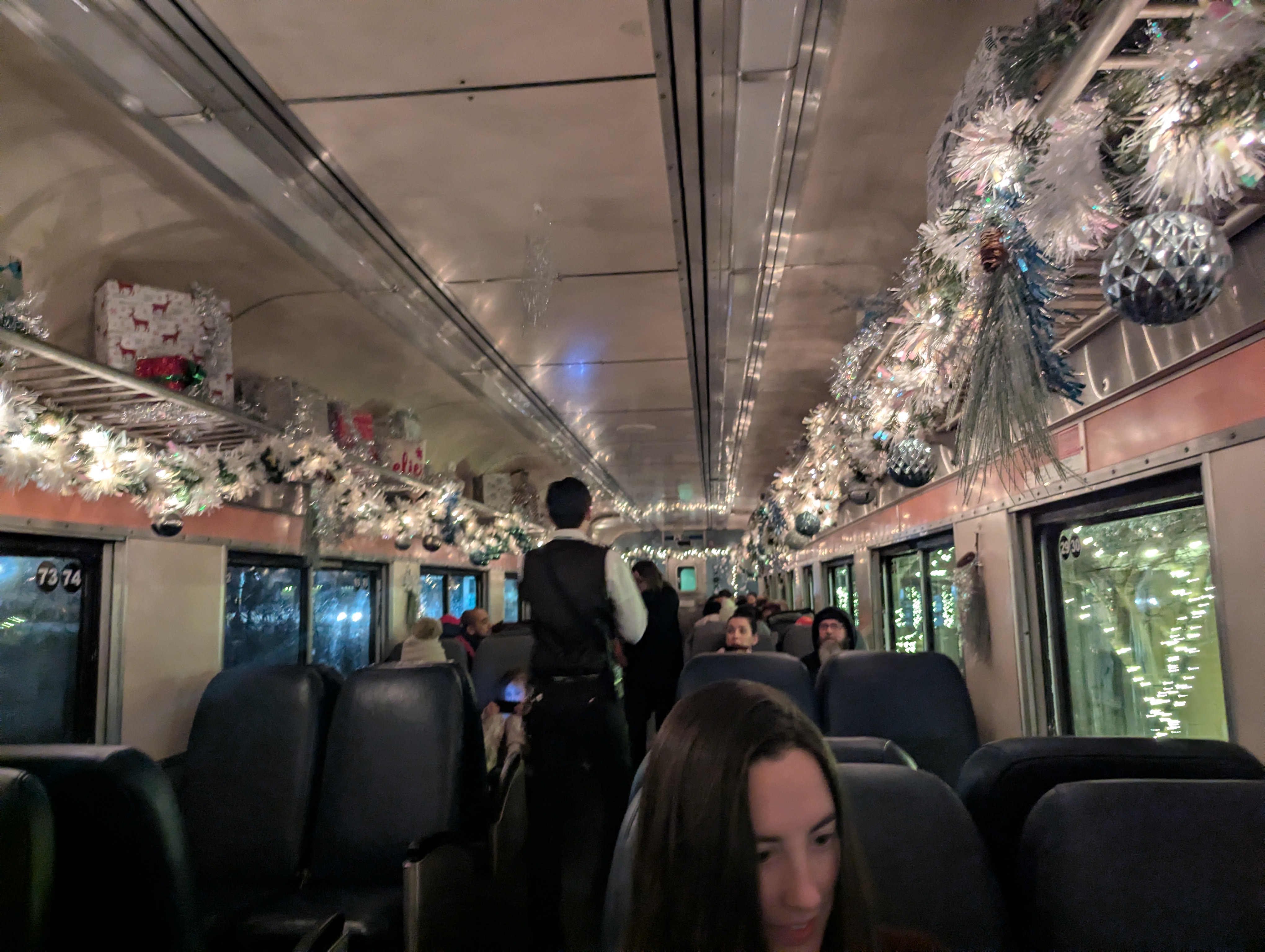 The elves came through singing carols and bringing cookies to the kids. There’s always an elf making balloon animals—or hats, or candy canes—for the kids throughout the ride. Christmas music plays the whole time, setting the perfect atmosphere.