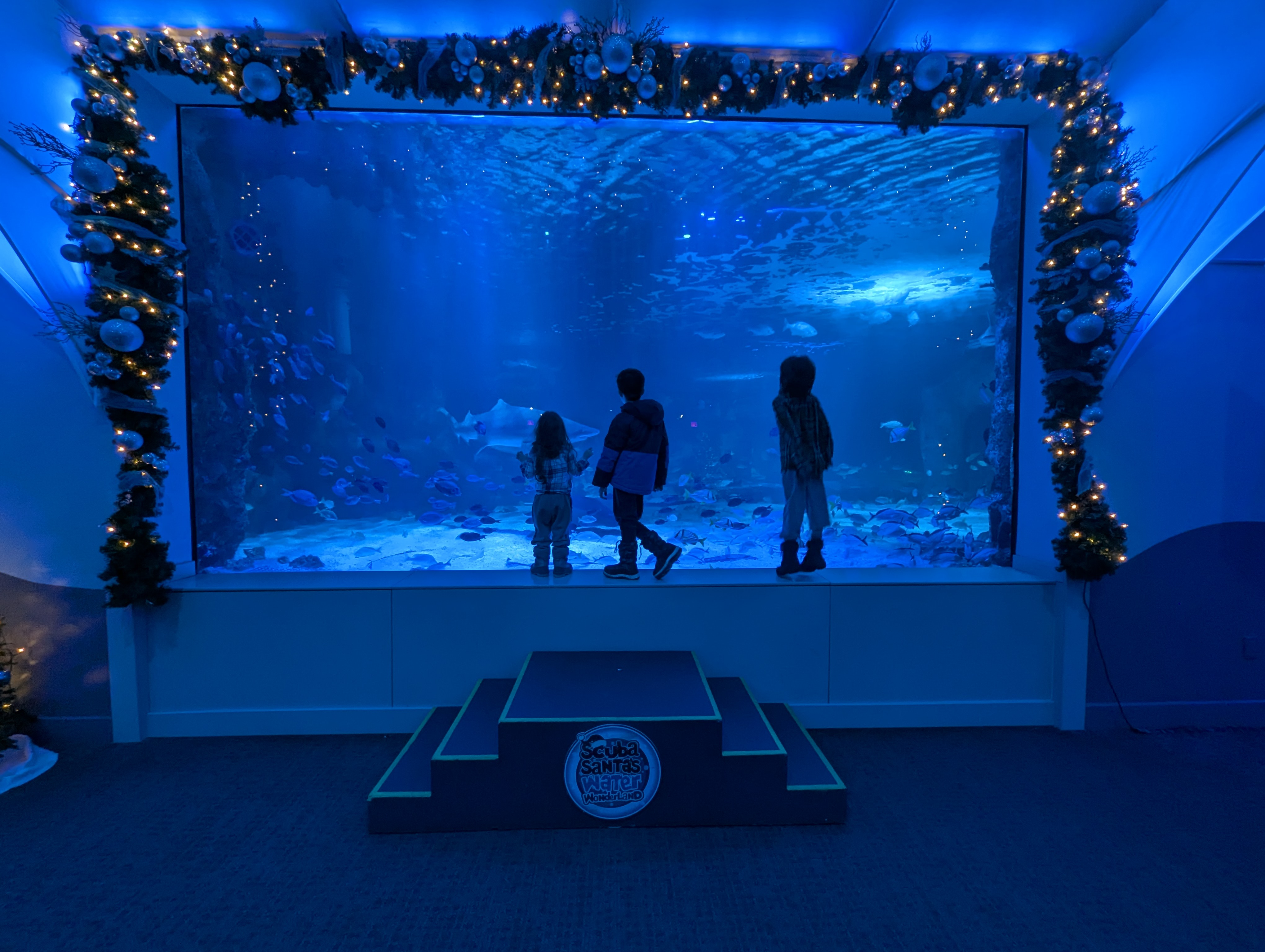 Holiday decorations throughout the aquarium